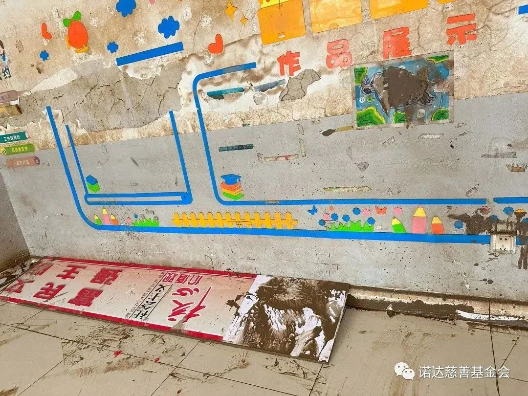 虽然洪水冲进了校园,淹没了一层的教室。但是为了孩子,为了教育,所有人都在为恢复校园而努力。
